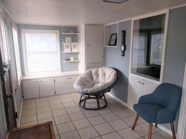 - 2nd Bedroom is off of the kitchen and bathroom with a large walk-in closet. Next to this is a newly renovated bathroom with glass enclosed shower, storage, pedestal sink, & toilet.
