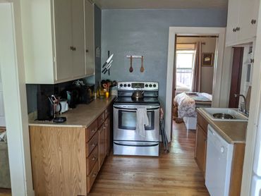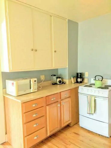 - Full kitchen complete with dishwasher, microwave, stove, fridge.