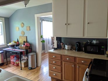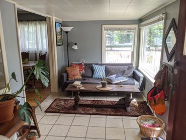 - Bright sunroom, spacious living room, giant back yard with mature trees butting up to a small peaceful creek. Plenty of space to garden!